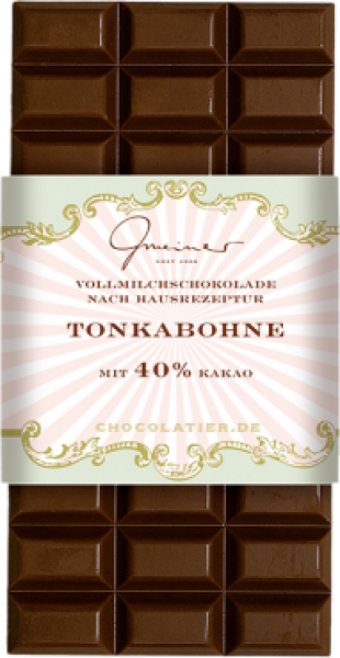 Feinste handgeschöpfte Vollmilchschokolade mit einem Kakaoanteil von 40 %. Beste gemahlene Tonkabohnen verleihen der Schokolade dieses feine Aroma für höchste Ansprüche. Ein Schokoladenerlebnis der besonderen Art.