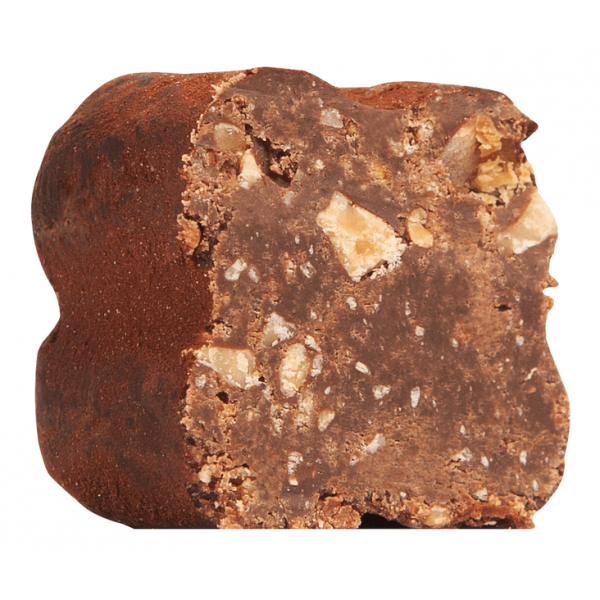 Dunkle Schokoladentrüffel mit Amaretti und Piemont Haselnüssen.