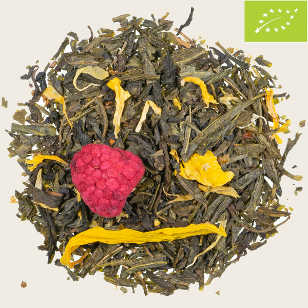 Ein mittelkräftige Mischung unterschiedlicher chinesischer Teesorten, mit dem frischen Geschmack von Himbeeren, Mango und Jasminblüten. Ein Fruchtiger Grüner Tee in Bioqualität.