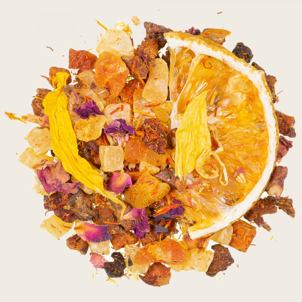Mango trifft auf Mandarine und bietet ein unvergessliches Geschmackserlebnis. Durch sorgfältig ausgesuchte Zutaten enthält dieser natürliche milde Früchtetee weniger Säure. Eine schöne Mischung aus hellen Früchten und eine schöne Alternative zum klassichen Früchtetee. Schmeckt auch hervorragend als Eistee.