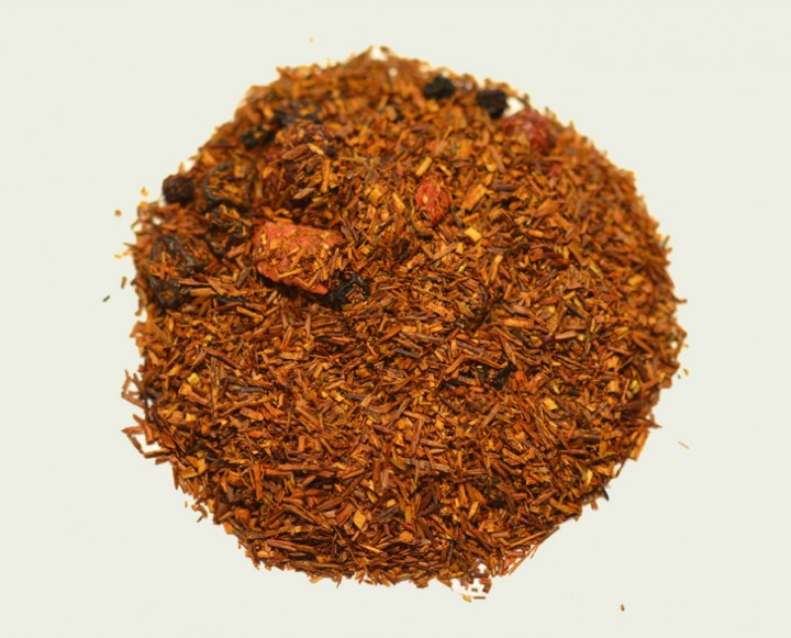 Rooibos, Weinbeeren, Holunderbeeren, Aroma, rote Johannisbeeren, Erdbeerstücke, Himbeeren, Brombeeren, Sauerkirschstücke, schwarze Johannisbeeren, Heidelbeeren